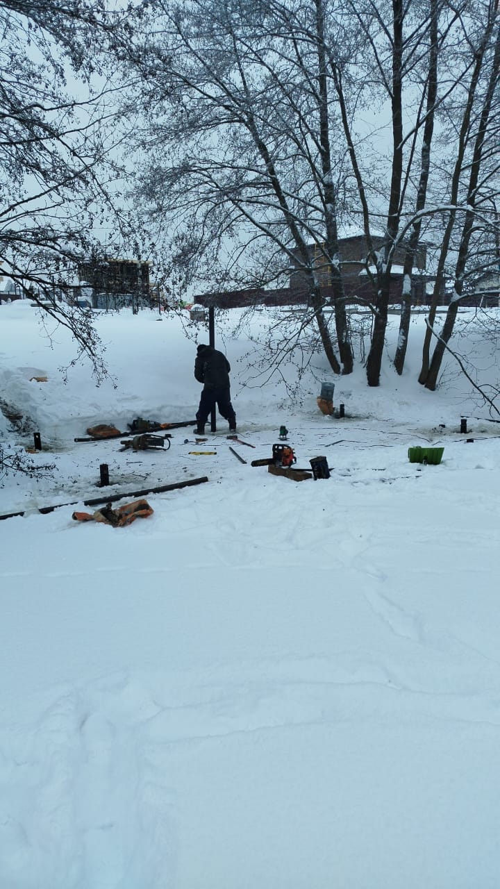 Пирс 6х3 на винтовых сваях зимой