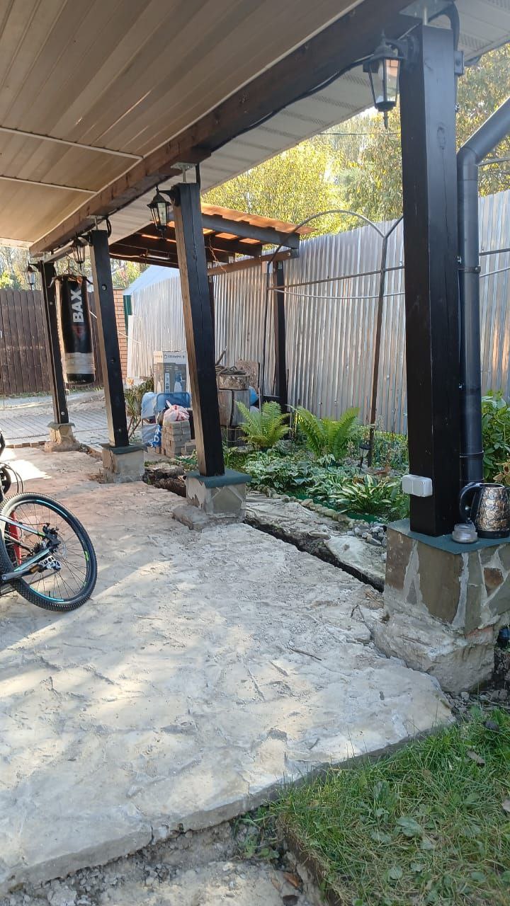 Выдавило тумбы под опорами навеса - заменили на винтовые сваи